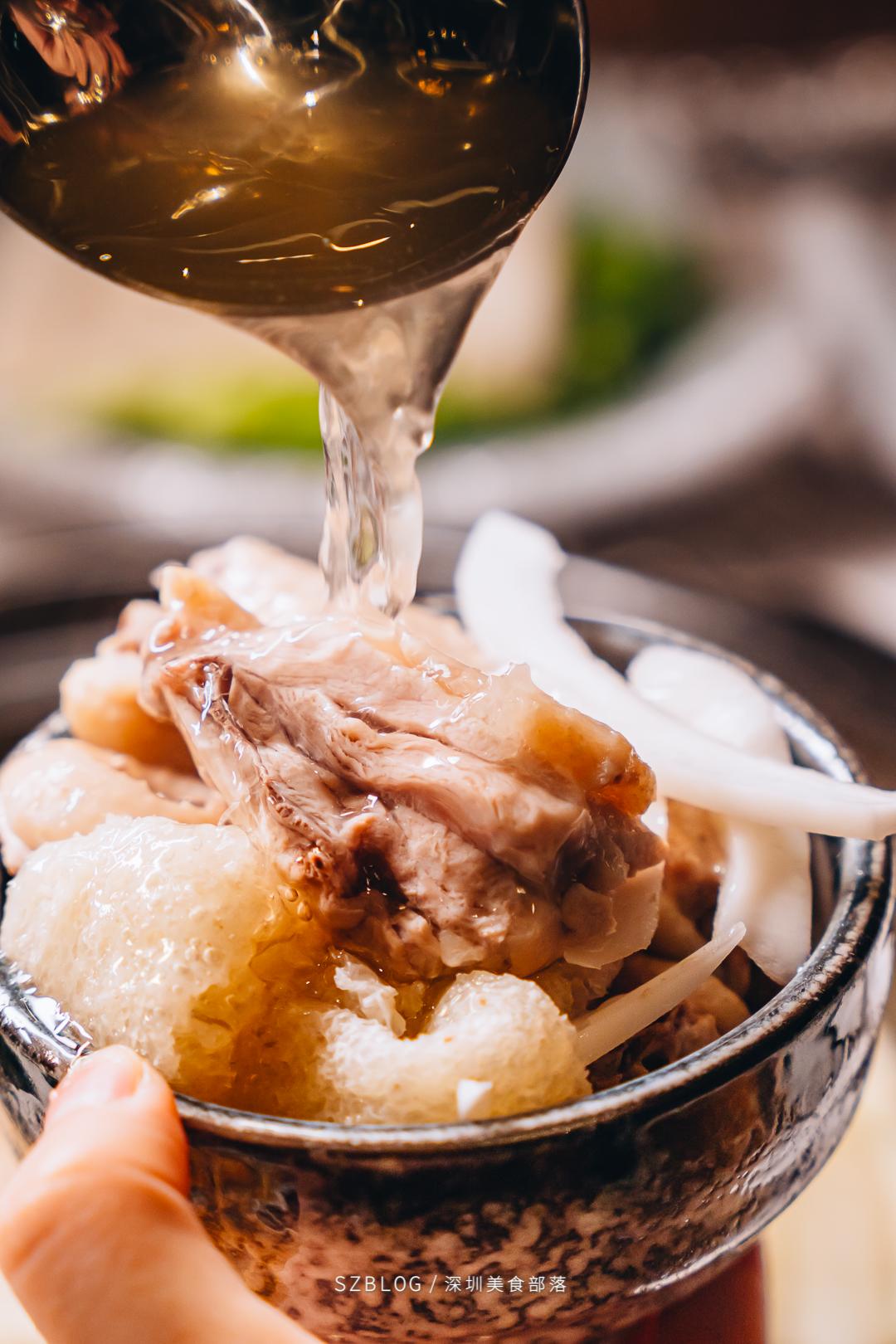 顶部咸甜的腊味和底部满满的焦脆锅巴,是它诱人的特征。被清甜汤底填满肚子后,又来一击咸香的操作,直接销魂~