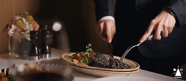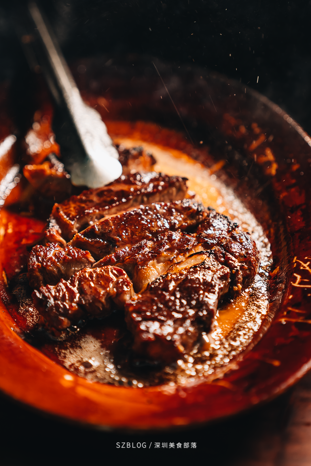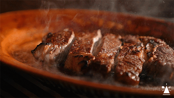 牛排得先经历一次炙烧和煎制,再放入专门的炙烤盘内高温炙烤。烤-煎-烤,3次转换,将汁水更好地锁住。眼肉不用过多调料,只需用法国普罗旺斯香草和西班牙Pimenton de la Vera烟熏红甜椒粉PDO简单调味。