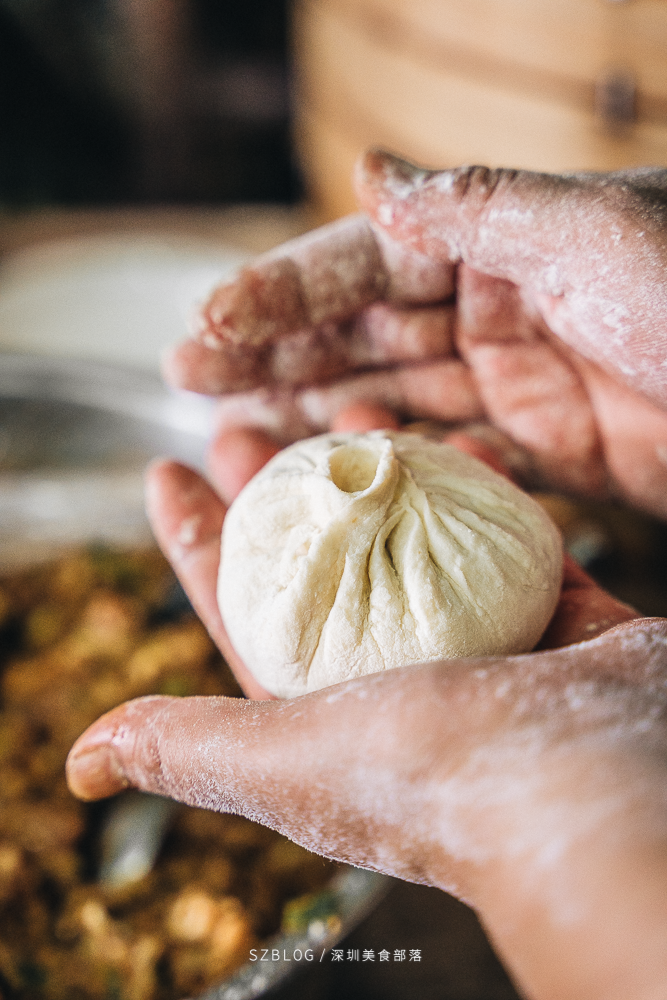 与常见的包子不同,老面包子更大个,口感更劲道。包子有11种口味,一天最少能卖800个。