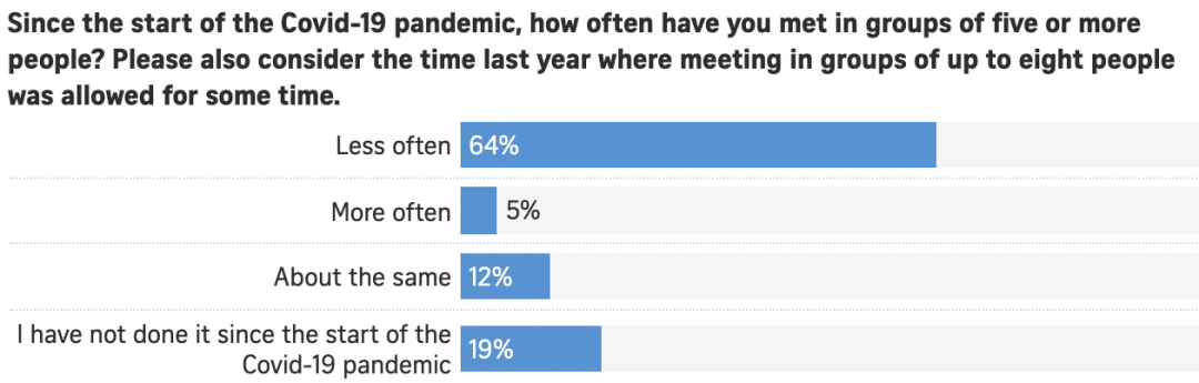 不仅是出门吃饭的次数,跟5人及以上朋友碰面的次数也骤减。