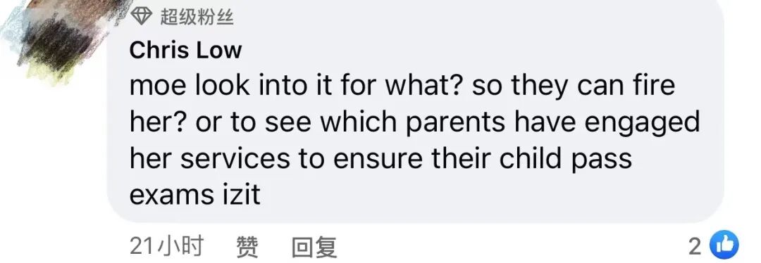 目前教育部已经向海峡时报表示,该事件正在调查中,教育部将严肃处理教师的不正当行为,并将毫不犹豫的对那些不遵守教育部对教师的行为和记录标准的人采取纪律处分(包括解雇)。![]()