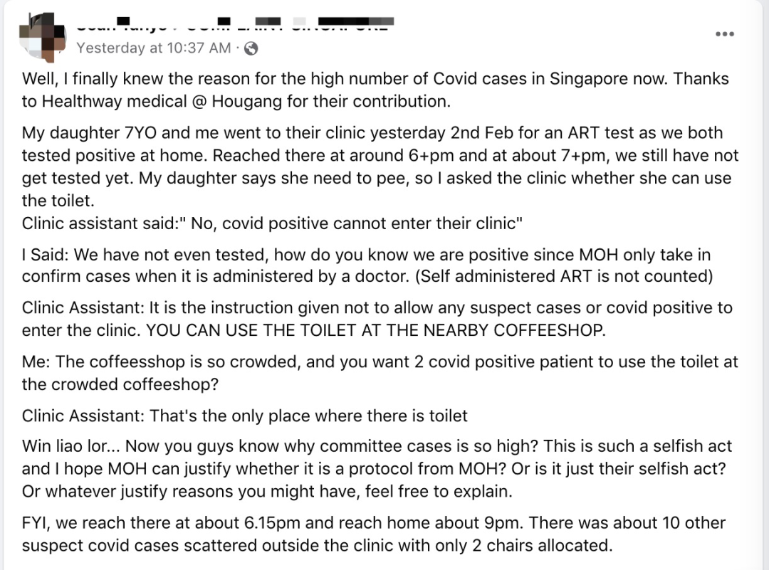 因为病毒会在空气跟物体表面存活好几个小时。新冠患者用过厕所,就有可能导致下一个使用者中招感染,不管在哪里。但如今,榜样却能建议新冠疑似病患去人更多的地方使用厕所,没考虑这么做是不是会进一步传播病毒。① 感染的人确实很多,多到甚至已有诊所疑似“躺平”。② 尽管卫生部给出感染新冠以后如何做的大框架指南,但实际操作取决于个人想法。