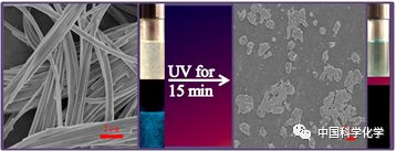 近期,岭南师范学院王胜教授、华南理工大学曹德榕教授以及华东理工大学马骧教授三个课题组合作设计合成了一种新型多功能的光致变色二噻吩乙烯分子BTE-CNPH,该分子在组装体、固态及薄膜中表现出可转换的聚集诱导发光(AIE)性能。在特定浓度THF/H2O溶液中,还可自组装成一维纳米线结构,并在紫外光照射下,逐渐转变为无定形片状结构。敬请关注!