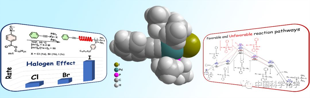 合肥工业大学朱元元教授、吴宗铨教授与南京大学梁勇教授合作,在实验中发现了炔钯配合物引发异腈活性聚合的卤素效应,并通过理论计算解释了观察到的实验现象,提出聚合过程中异腈单体插入的具体反应历程。