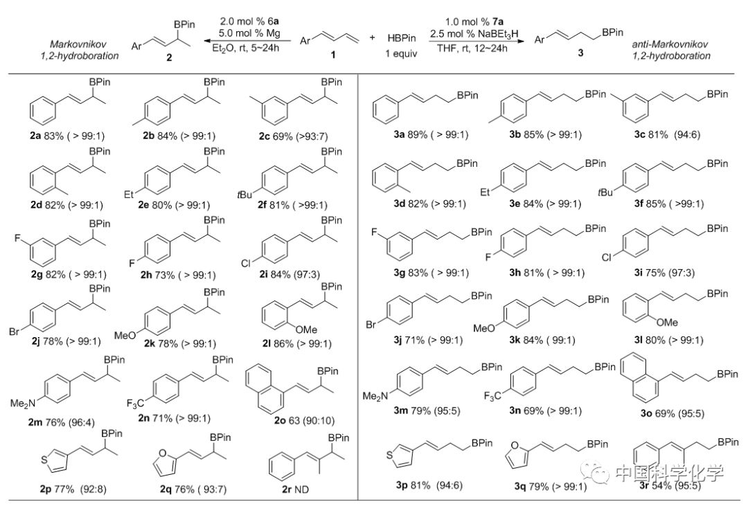 图2 区域选择性可控的共轭二烯的1,2-硼氢化