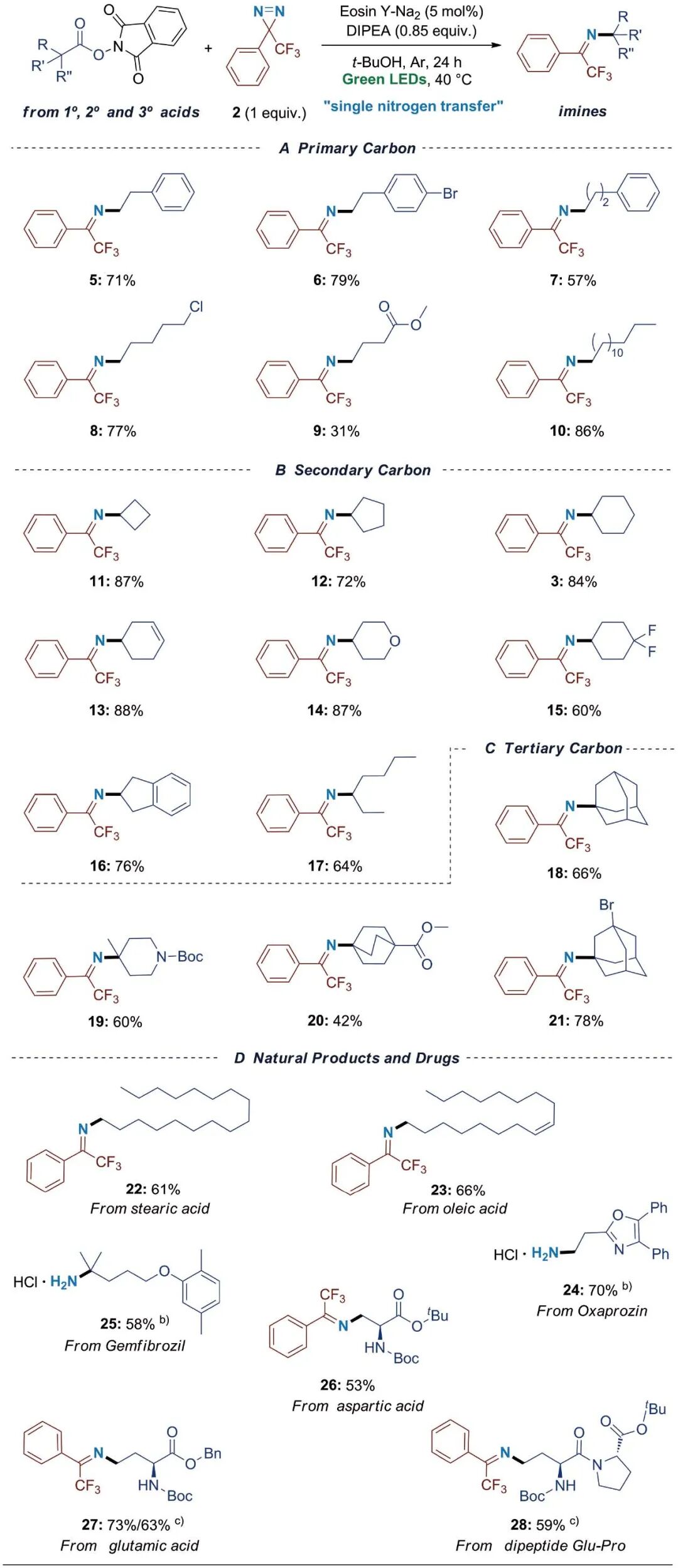 图3. 脱羧亚胺化反应的底物范围