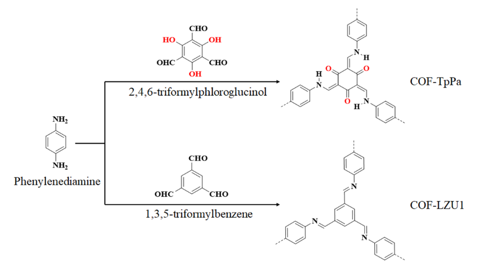 图1 COFs-TpPa和COF-LZU1的合成示意图