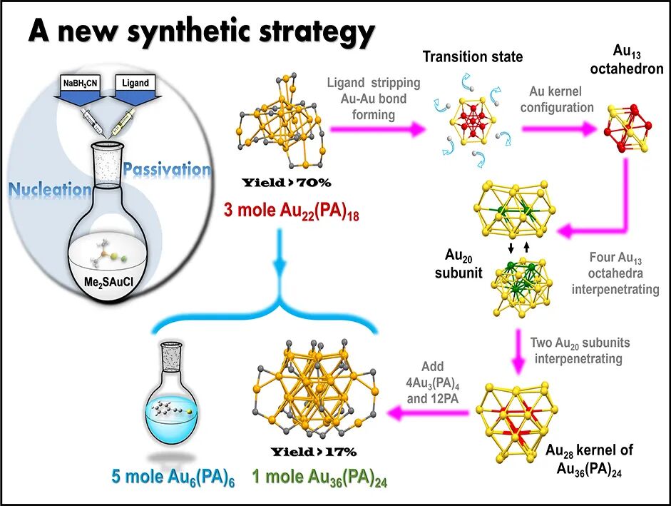 A synchronous nucleation and passivation strategy for controllable synthesis of Au36(PA)24: unveiling the formation process and the role of Au22(PA)18 intermediate