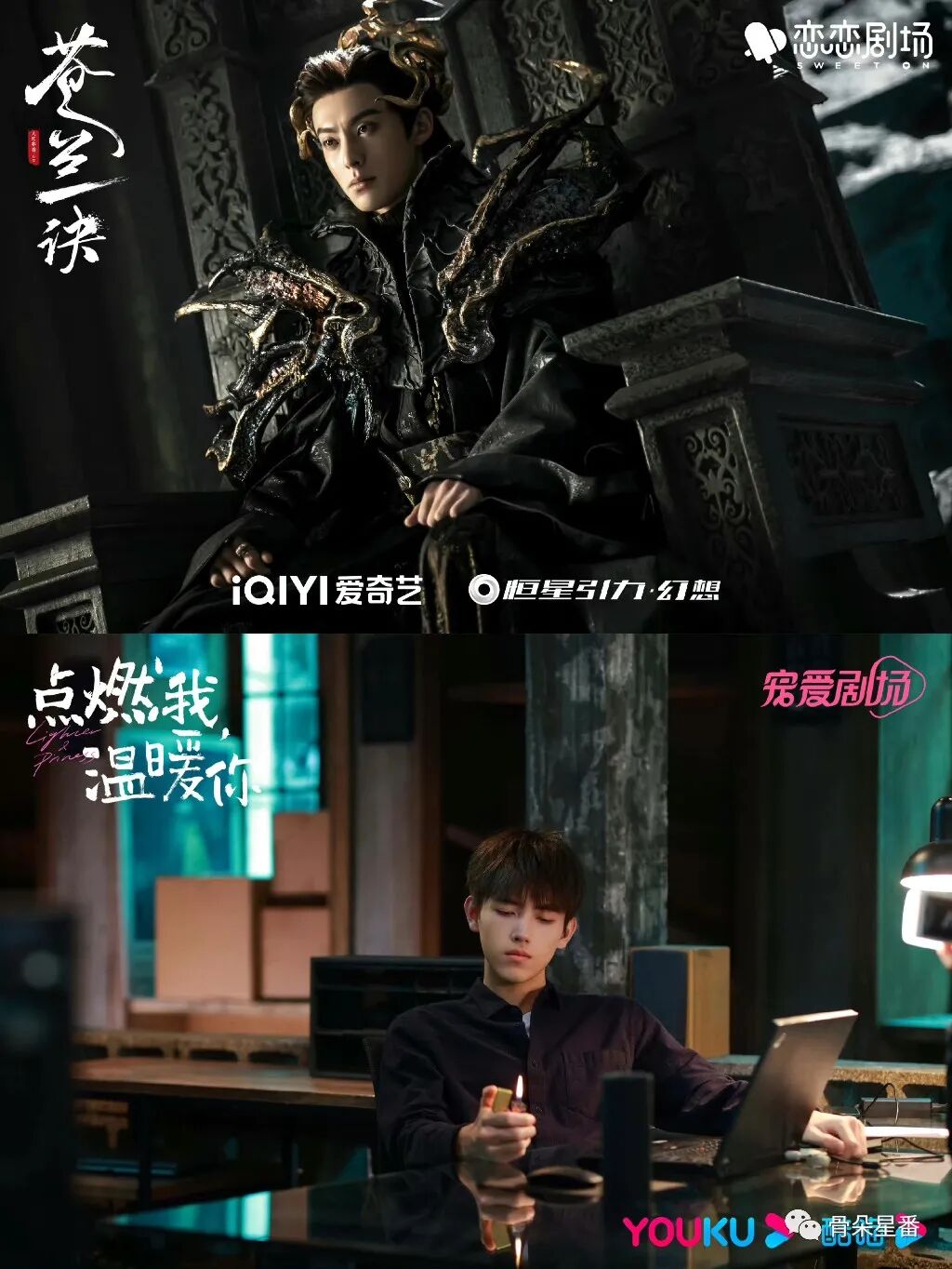 暑期最大的黑马无疑是凭《苍兰诀》扭转观众印象的王鹤棣。他所饰演的东方青苍兼具霸气与深情,服化加持下彻底与古偶丑男割席。在网友们的考古下,歌声救人一命、空少领舞、综艺西瓜头等笑料层出不穷,中二少年、火燎腚、社牛、颜霸等属性吸粉无数。一朝闻名,王鹤棣先前拍摄的轻体量古偶《浮图缘》获得前所未有的关注,被戏称为“一条被寄予厚望的咸鱼”。
