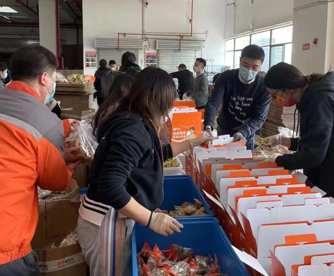 来伊份员工、合作伙伴忘我付出,主动驰援一线、服务一线,让保供工作从不可能变成可能。一线员工吃住在门店,物流员工也集中居住,24小时连续作战,实现了人员的闭环管理,杜绝交叉感染风险。