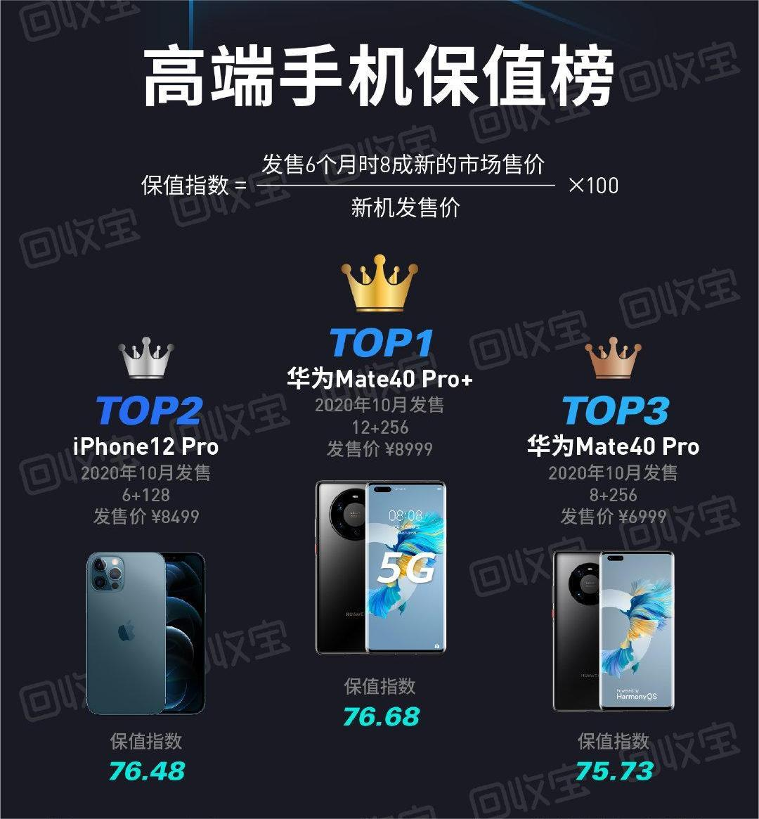去年回收宝公布的高端手机保值榜也显示,iPhone 12 Pro位居第二,仅次于华为Mate40 Pro+,iPhone 12以70.6的保值指数位居第六。显然,即使iPhone频频破发,其在二手市场依然广受欢迎,这也反而成就了它的高保值率。