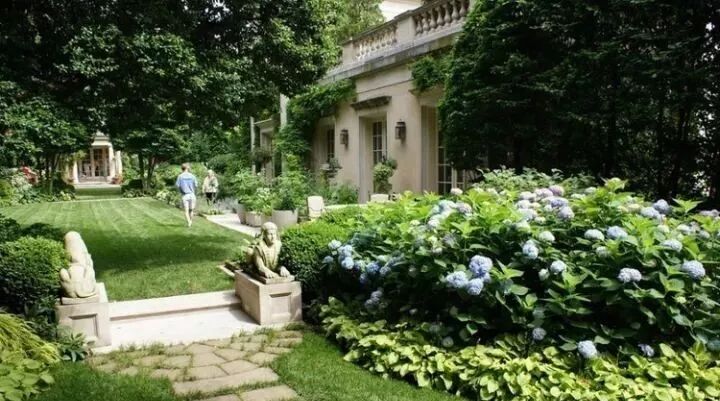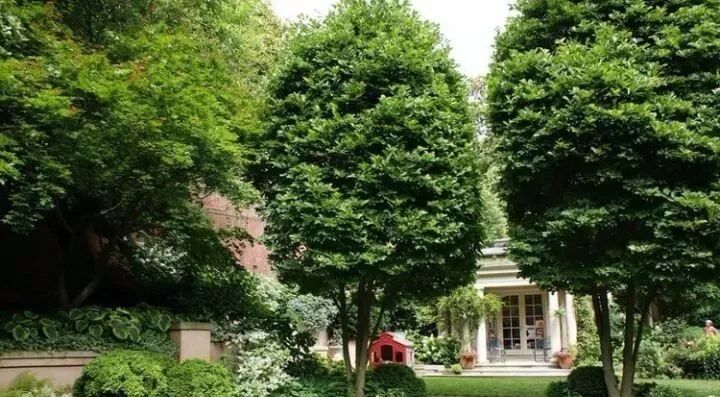庭院中常用的植物有欧洲七叶树、梧桐,