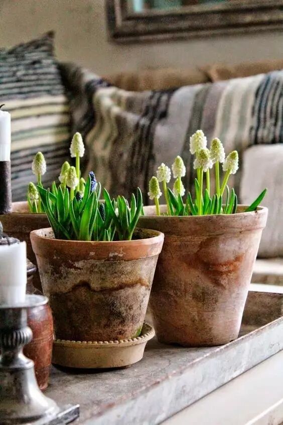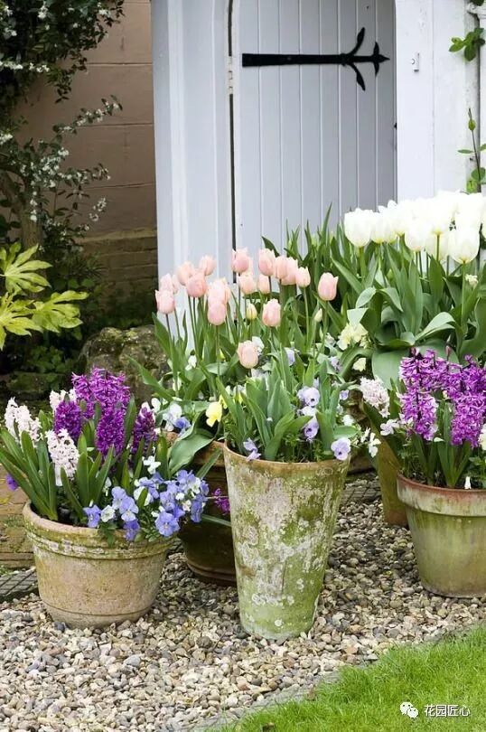 红泥陶种上郁金香、葡萄风信子等球根植物