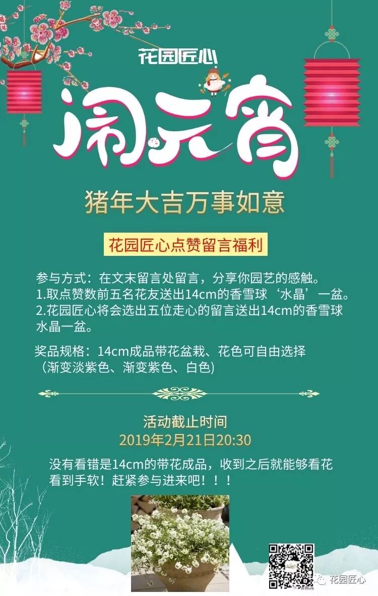 2.花园匠心将会选出五位走心的留言送出14cm的香雪球‘水晶’一盆
