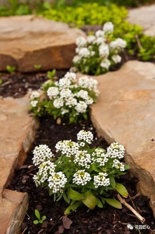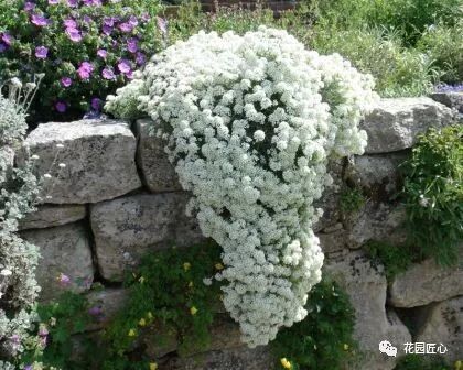香雪球是匍匐生长的,在窗台、木围栏、石墙等垂直绿化,可以柔化硬质材料、柔化花园转角等作用。能够让这些地方显得不那么突兀。