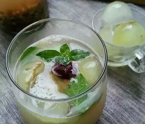 材料(4人份):半杯水;半杯蜂蜜;4杯切成大约1英吋大小的蜜瓜;1/4杯新鲜的青柠汁;2大勺新鲜薄荷叶;1/4茶匙盐;苏打水、冰块