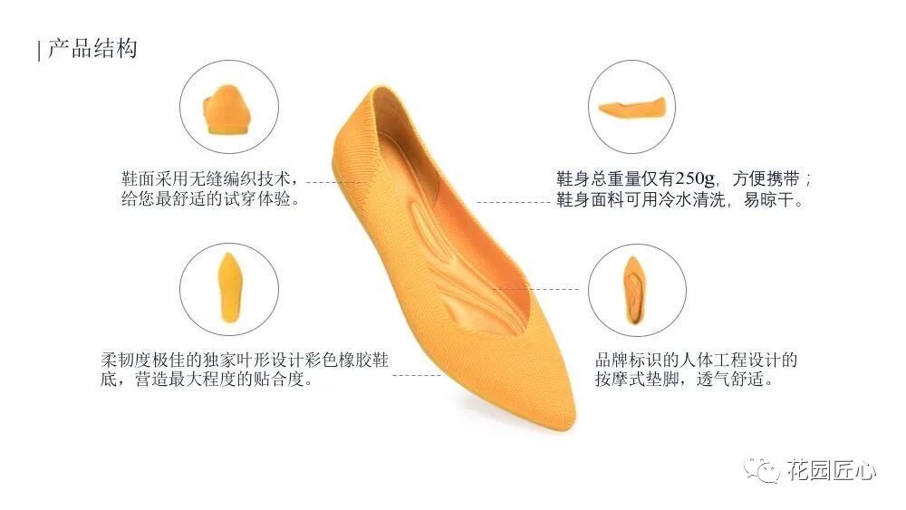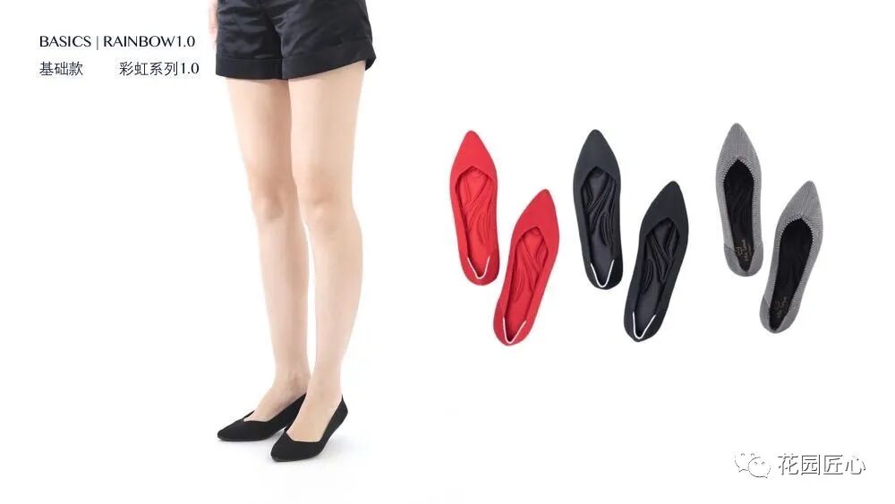 品牌在中国佛山有自己的生产基地,运用供应链柔性生产与工业化智造生产。节省制鞋的人力成本,一根线解决以往工人繁琐的鞋面制作。节省资源保证产品的稳定性和快反性。最终将节省的资源转嫁给消费者。