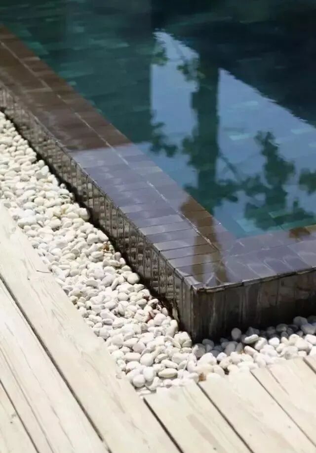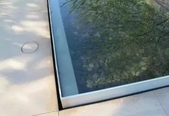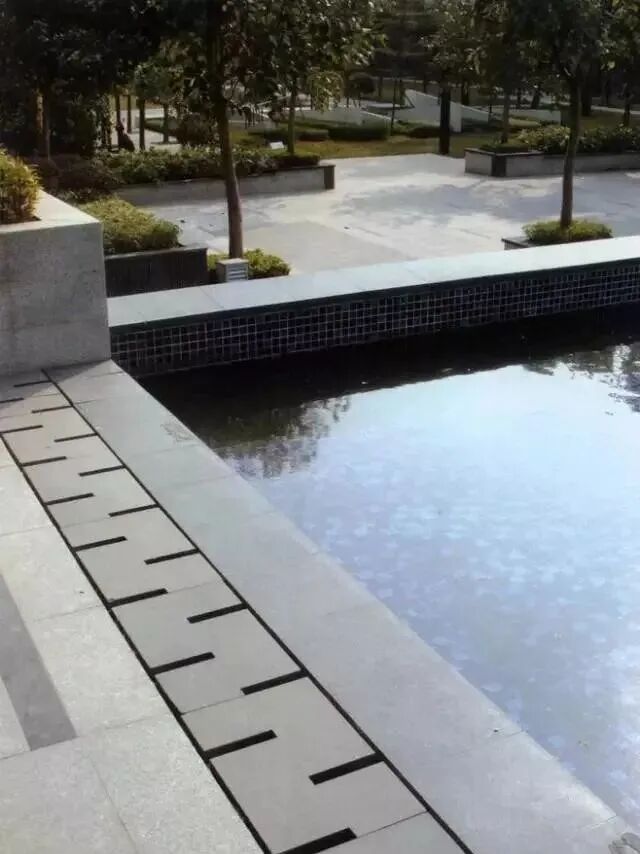 多以不锈钢与石材搭配铺设,作为缝隙式排水沟或装饰作用,运用不同的材质,碰撞出更富有质感的细节。