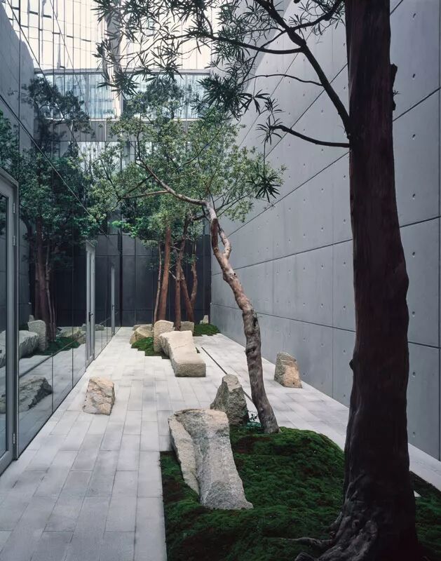 由六个庭院组成,分别位于B2F、B1F、1F、2F、3F、4F。此次设计完成了不同主题的庭院,融合了室内外的空间氛围,并给予客人不同的庭院感受。