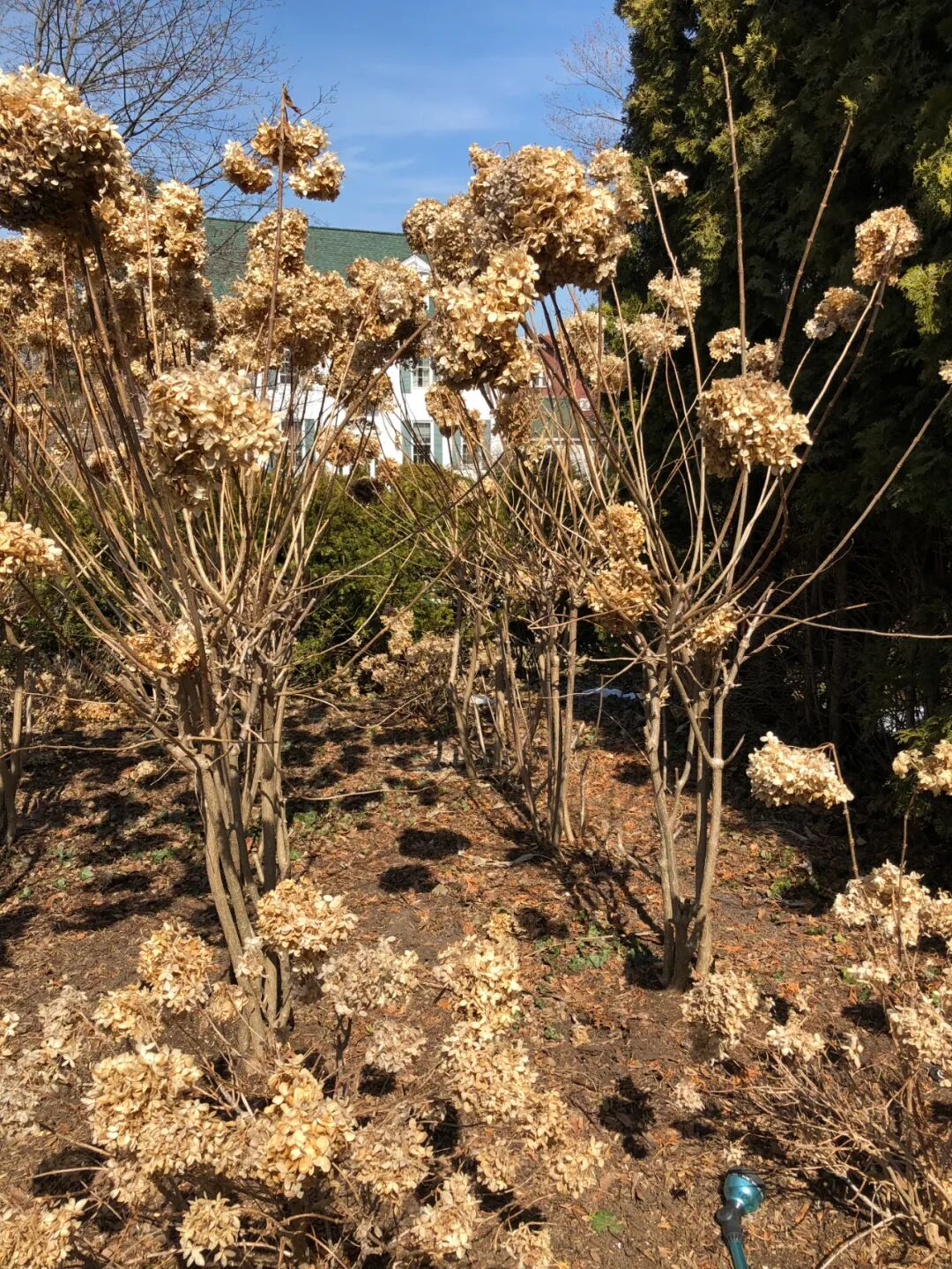 一些灌木植物比如蓝雪花、白雪花、圆锥绣球、乔木绣球等在这个月可以进行重剪,促使植物的养分回归于根部,储存养分,在回暖之后才能茁壮成长。