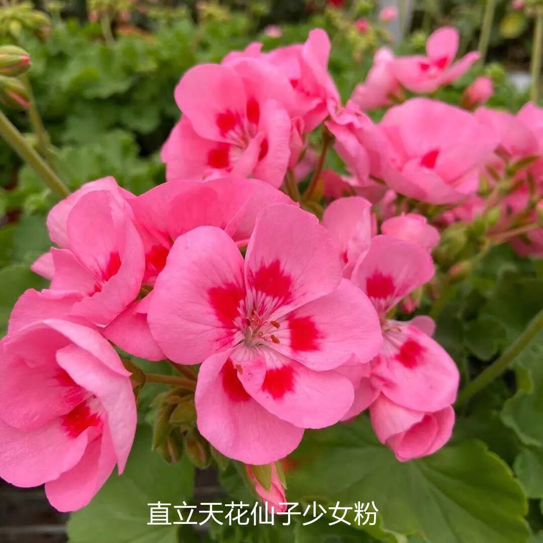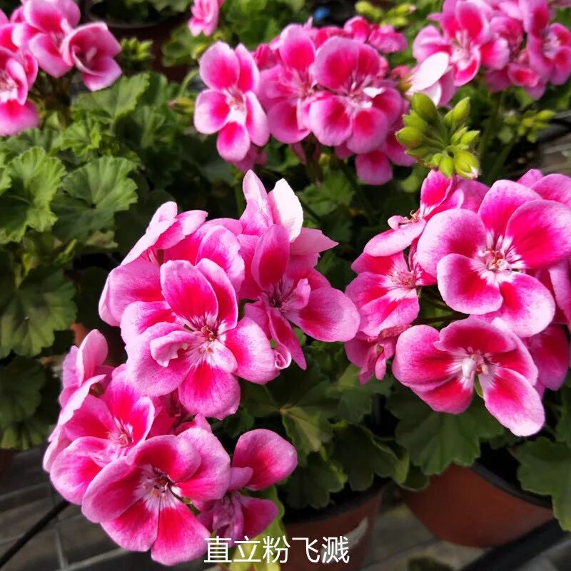 直立天竺葵:艾拉贝拉、花仙子少女粉、紫罗兰、粉飞溅。