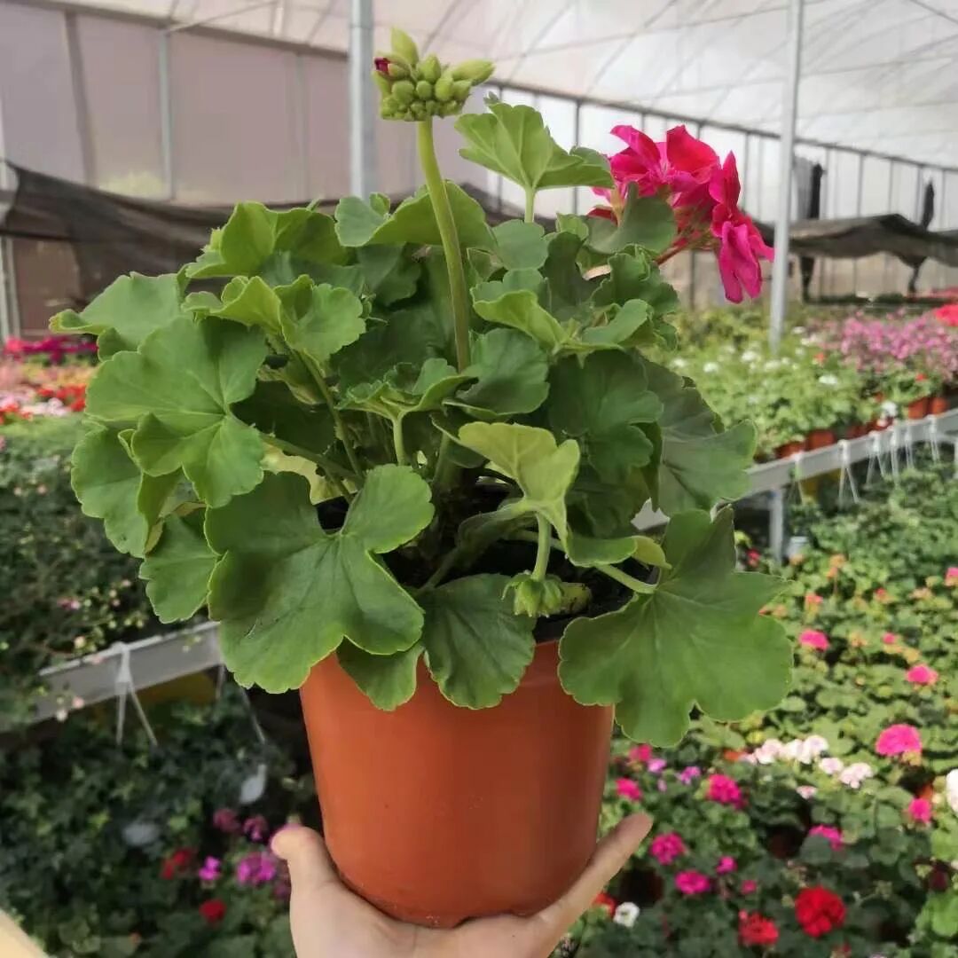 购买天竺葵的话,一定要选择苗株型紧凑、分枝数量多的为佳品,这样的苗才能在您家里生长旺盛、开花数量多。