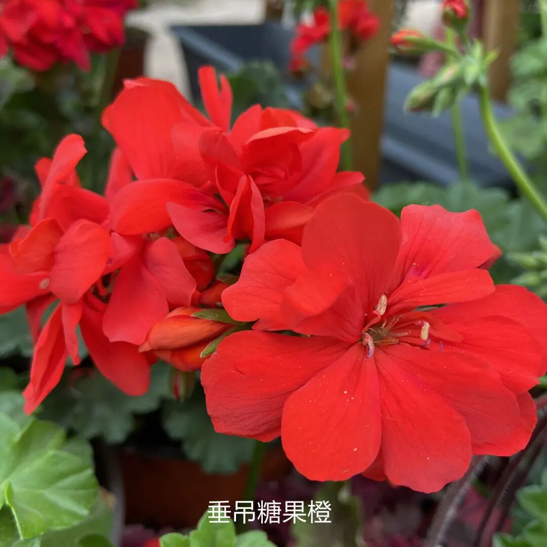 垂吊天竺葵: 粉女巫、玫红花球、糖果橙。