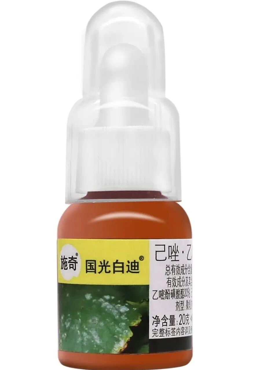 产品规格:品牌:国光施奇白迪 成分与剂型:30%己唑·乙嘧酚 悬浮剂 净含量:20克/瓶/盒(瓶子自带刻度吸管)