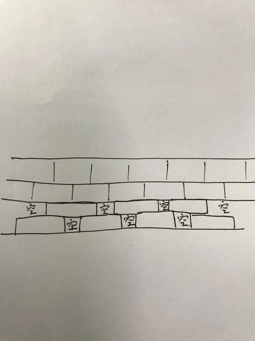 这个是屋主手绘的花坛砌墙立面图,周围的矮墙是70cm高度,花坛高度砌到65cm即可。
