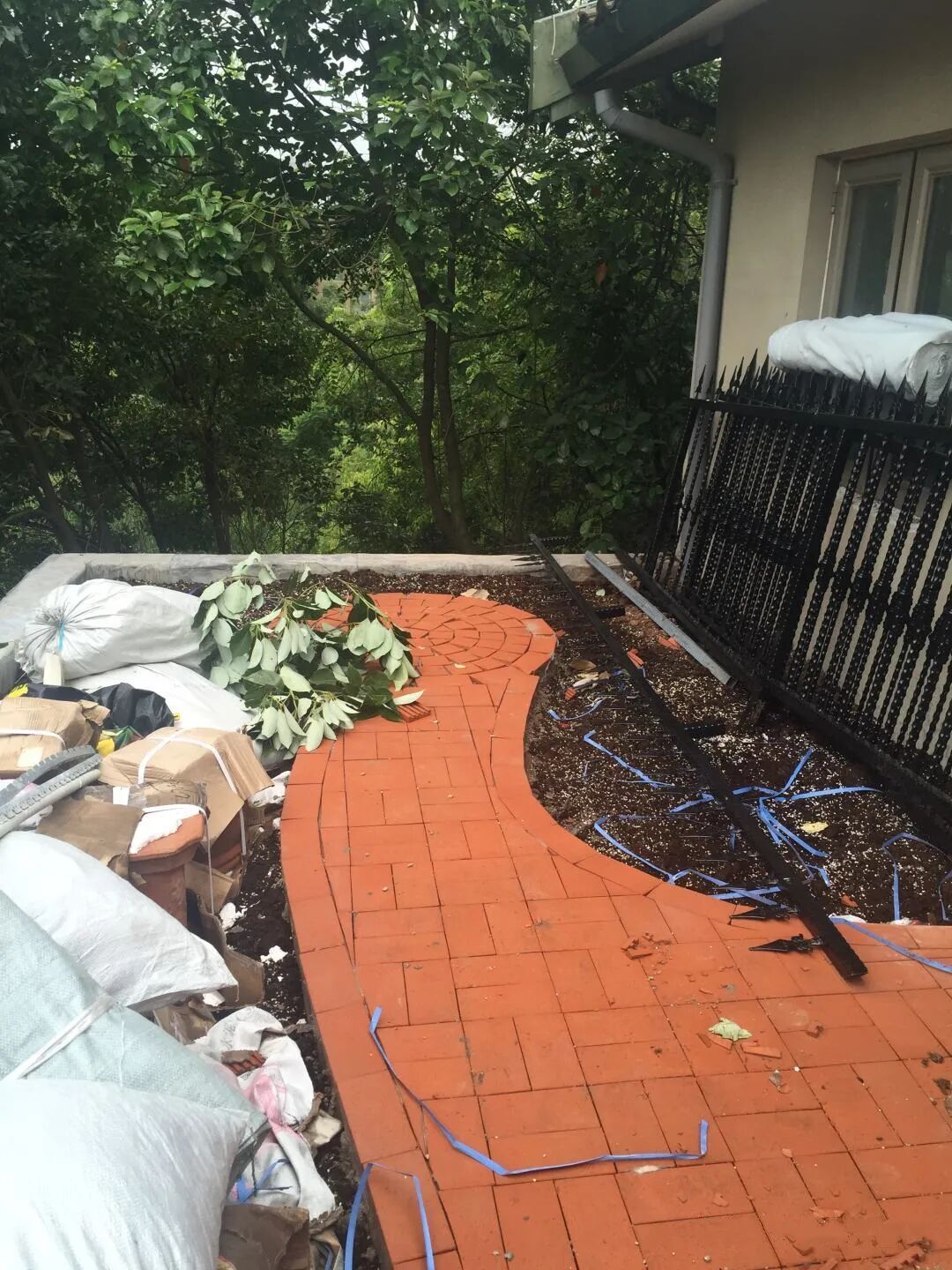 先大致的规划出路面硬化和花池的位置,用到的是空心砖,这样有利于排水。在后期围砌的时候,也给底部的砖块留出了更多孔隙,更利于排水。