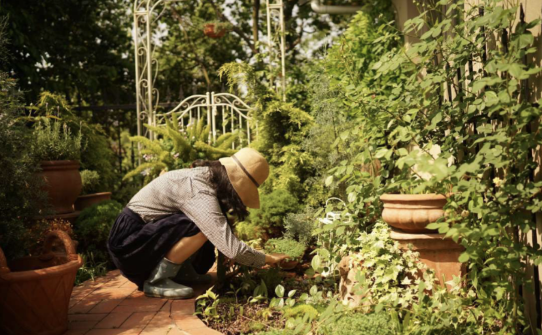 ▲兰奕正在打理花园
