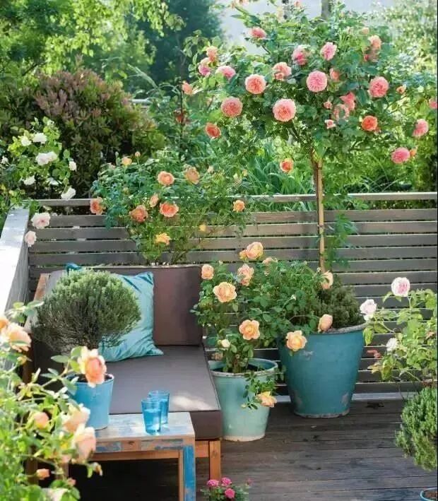 谁说小花园就不美丽?看到这些盆栽月季的魅力,你一定会相信小小的阳台也会变成美丽的花园!