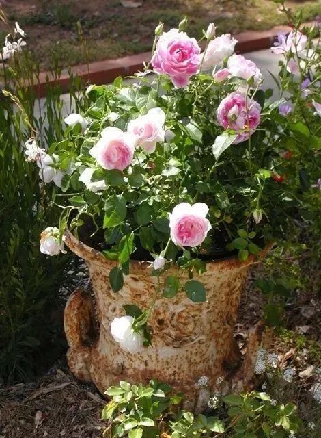 在选择容器时,一定要保证容器的底部有排水孔,积水对月季来说意味着生长不良或者死亡。如果没有就自己想办法钻几个。