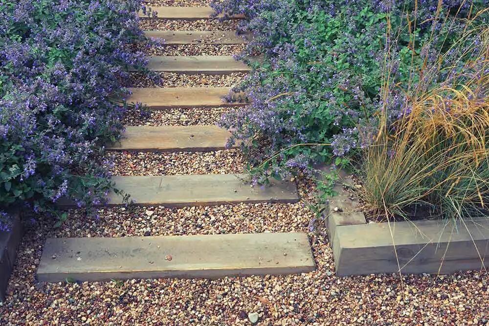 比如花园小径该采用石头还是木头,对于比较潮湿的地方建议使用石块,干燥的地方则可以用防腐木板材。