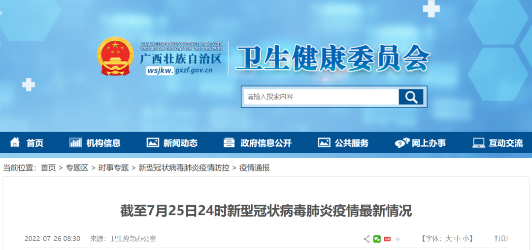7月25日0-24时,北海市新增本土确诊病例32例(海城区25例、银海区6例、合浦县1例),含9例由无症状感染者订正为确诊病例;新增本土无症状感染者365例(海城区334例、银海区27例、铁山港区1例、合浦县3例)。当日治愈出院本土确诊病例12例(海城区11例、合浦县1例),解除隔离医学观察本土无症状感染者43例(海城区30例、银海区12例、铁山港区1例)。