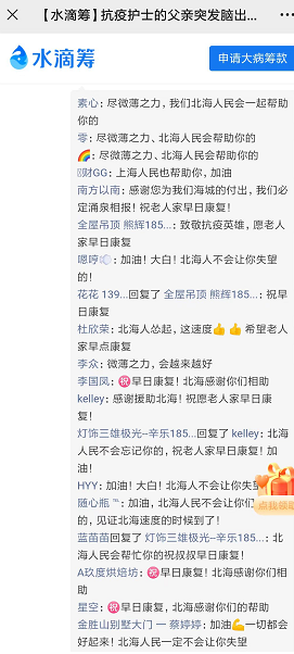然而,8月5日晚,覃将元接到家人的电话,得知父亲意外摔伤昏迷,虽然后来顺利完成了手术,但由于病情严重,不得不转入重症监护室。尽管心中牵挂着父亲,但覃将元仍然坚持完成了8月6日的核酸采样任务,次日才回到玉林隔离休整。父亲的治疗费用和后期康复费用巨大,而家里的积蓄已经花光,无奈之下,覃将元通过水滴筹平台为父亲筹集治疗费用。没想到筹款发起后,得到了北海广大市民的大力支持,大家纷纷转发并捐款,目前已筹够目标额度。“北海人民不会让你失望”“感谢支援北海”,北海人民的善意和一条条暖心留言让覃将元充满感激。他说:“北海人民给予我的关心和帮助我将铭记于心,愿疫情早日散去,愿北海的发展越来越好!”