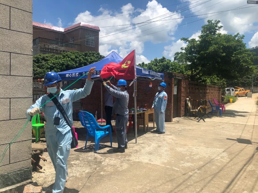 7月22日,南方电网广西北海合浦供电局组织一支党员突击队,为合浦县公馆镇香山村委草塘村新设置的临时防疫点接入临时电源,及时解决临时防疫点照明、检查等用电问题。