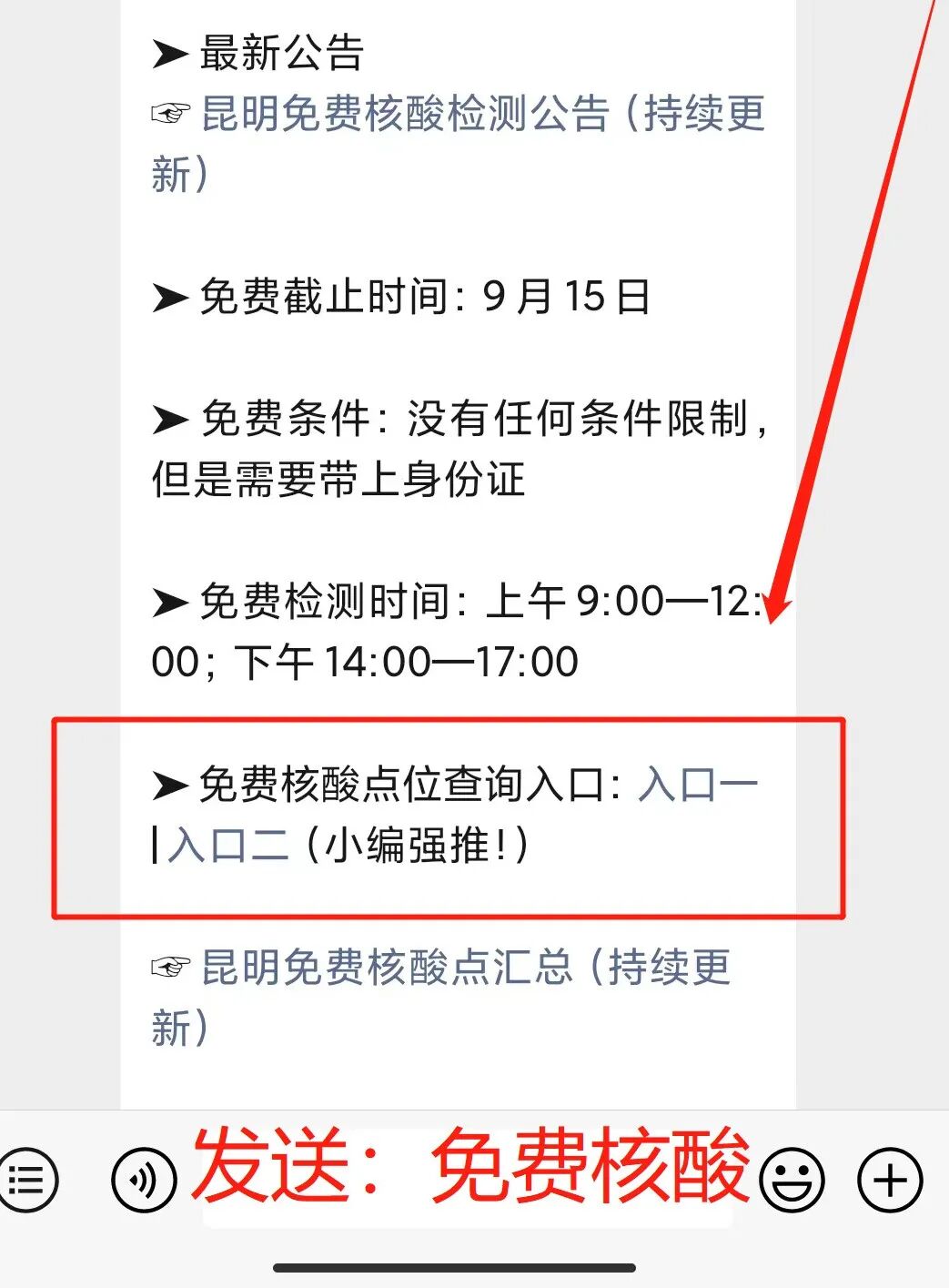 发送【免费核酸】