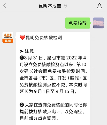 回复【免费核酸】查询昆明免费核酸检测点