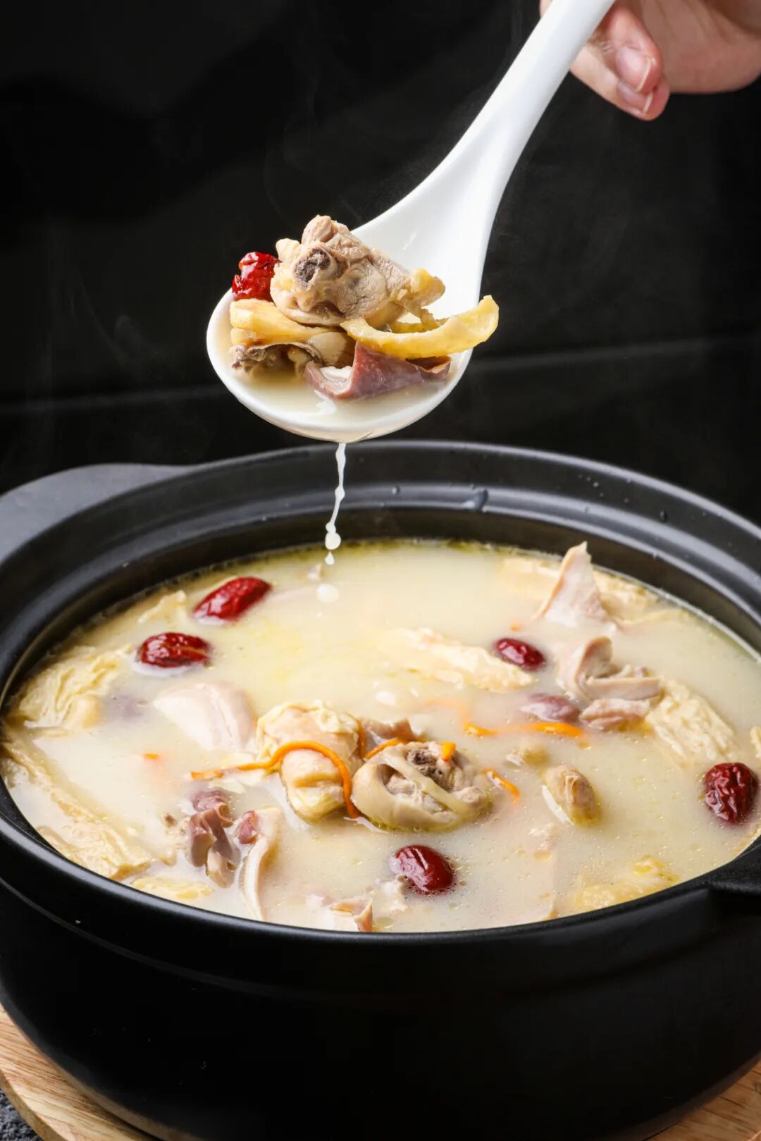 芳香透亮的海南椰子鸡汤简直就是这个季节里的救赎!香甜的椰子味道搭配鲜嫩不柴的大块鸡肉,还有鲜甜的高汤,每一口都满足!