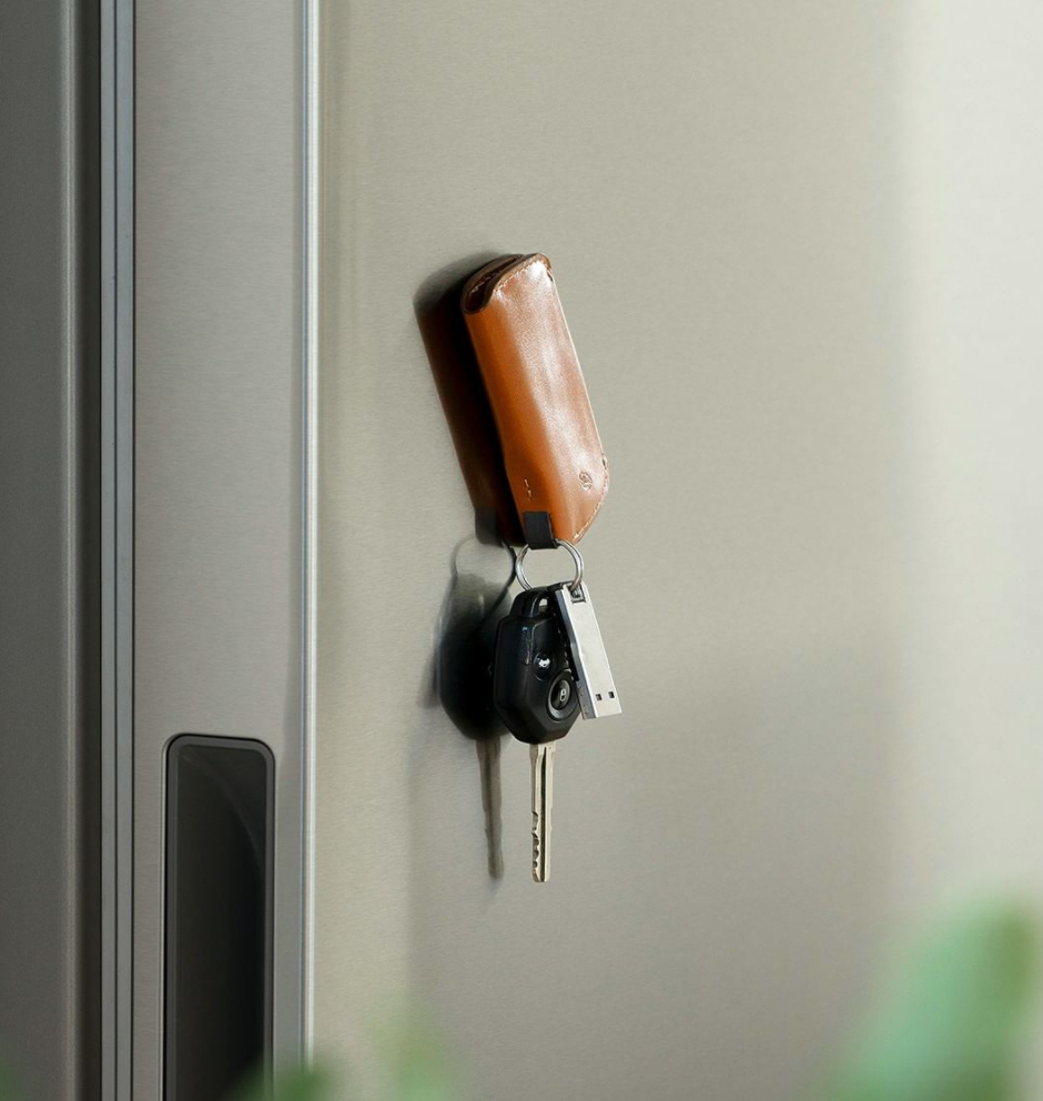 Key Cover 在我们公司人手一只了差不多。(什么?谁说他没有?那可能是冒牌的 Bellroy 员工...😶)因为它真的很实用。虽然个头不大,放4-8枚钥匙妥妥的,扣起来后非常有安全感,不会刮伤手机屏幕。(小编的钥匙从前常常在跟主人和捉迷藏的游戏,自从有了 Key Cover, 妈妈再也不用担心我找不到钥匙了。)另外还有一个很灵的小贴士分享给大家,因为磁扣设计的缘故,Key Cover 是可以吸附在冰箱上的!出门前「诶?钥匙在哪里」的场景从今往后将被记入史册,不再重现。