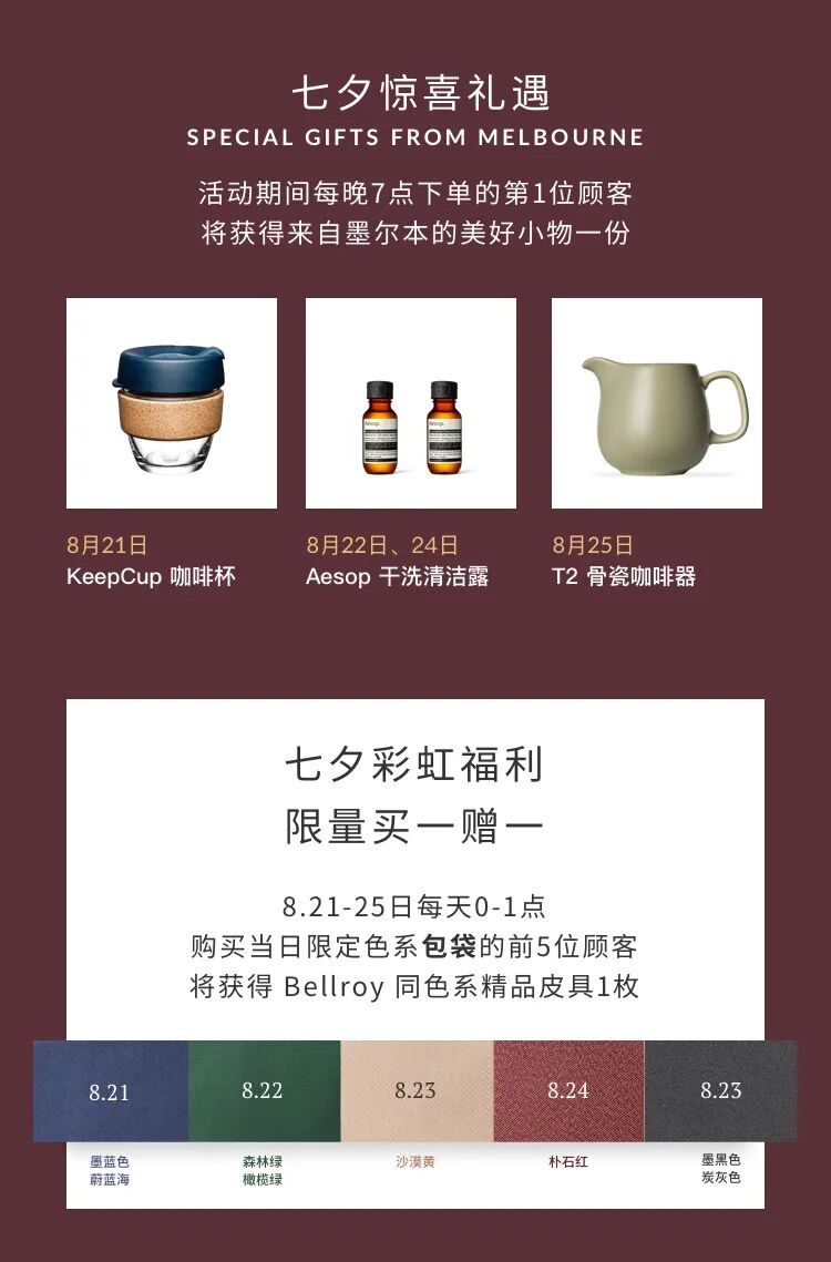 功能介绍 来自墨尔本的环保包袋配件品牌。认证 B Corp 共益企业。透过创新设计为生活注入灵感、便捷与质地。