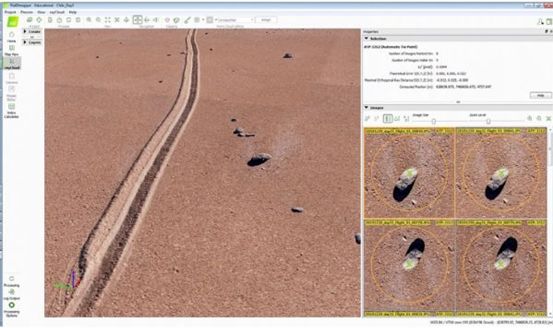 下图为来自智利圣佩德罗德-阿塔卡马附近4740米(15500英尺)AMSL的图像和pix4d生成的点云的细节,由WingtraOne在4900m(16000英尺)AMSL飞行时拍摄,其有效载荷为Sony RX1R II, GSD为2.2厘米/像素。