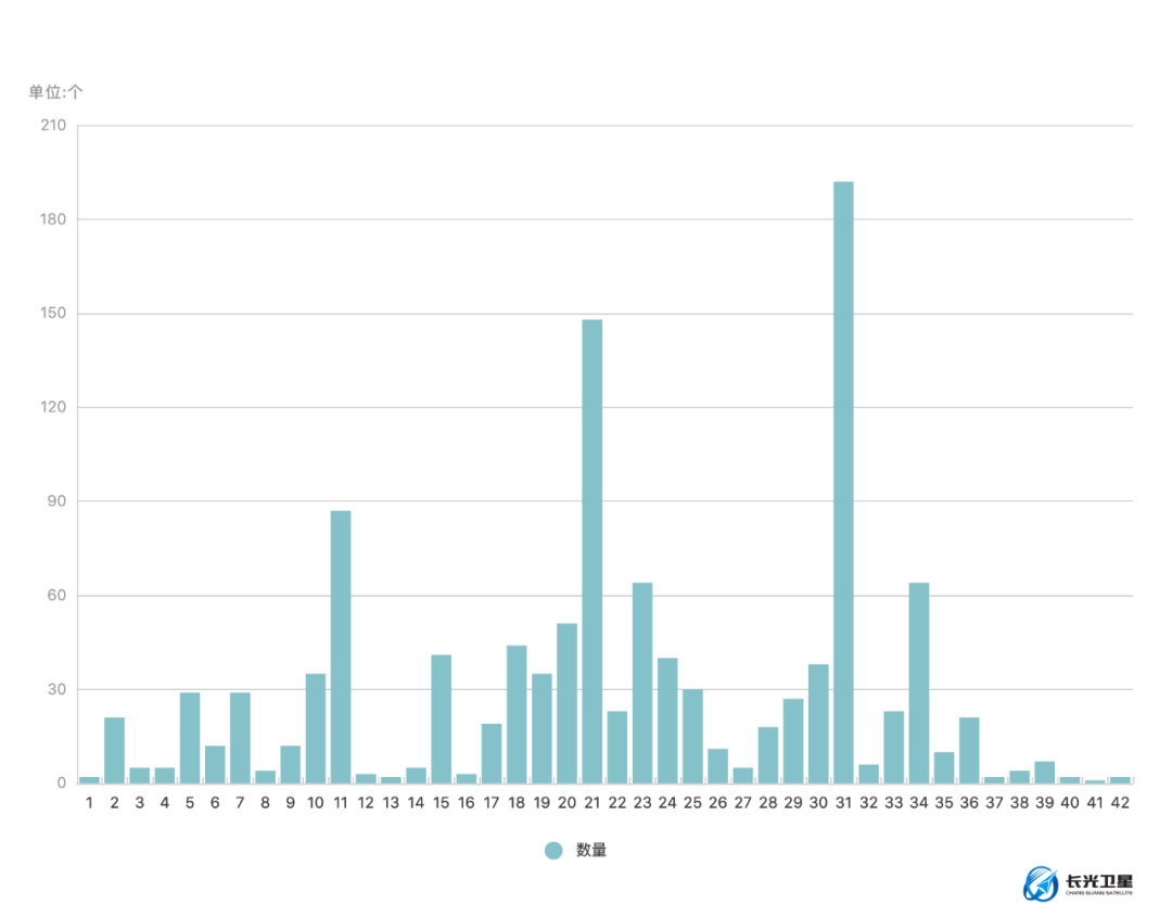 下图为每个类别的储存罐总计数量对比图,42类储存罐累计总数量为1182个。