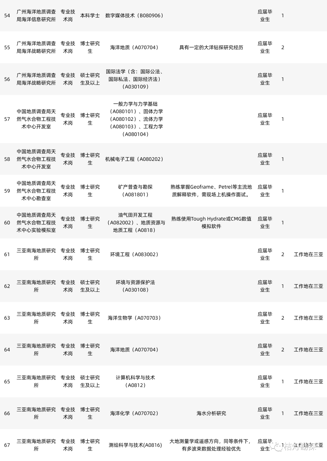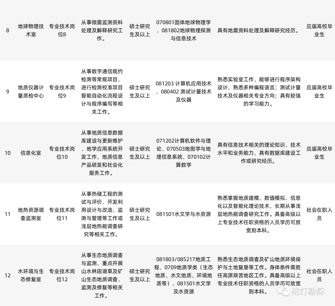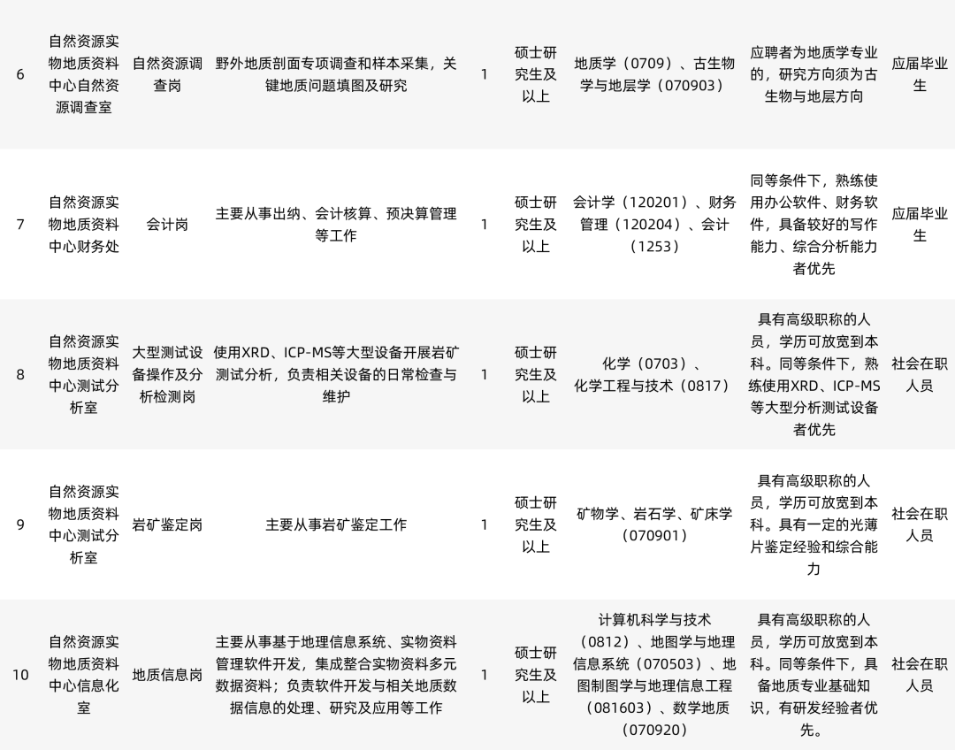 工资福利待遇:工资待遇按照中国地质科学院勘探技术所现行的相关规定执行;参加社会保险、医疗保险、缴存住房公积金等;单位有单身职工公寓;符合天津市落户政策的可以落户天津。