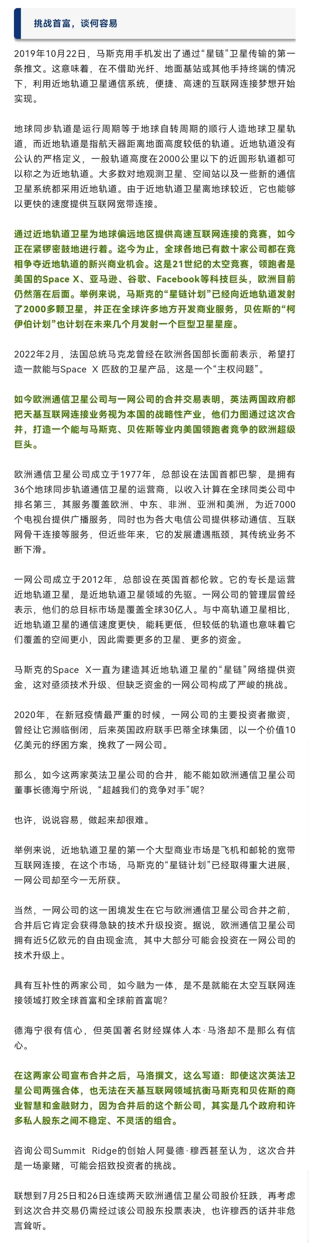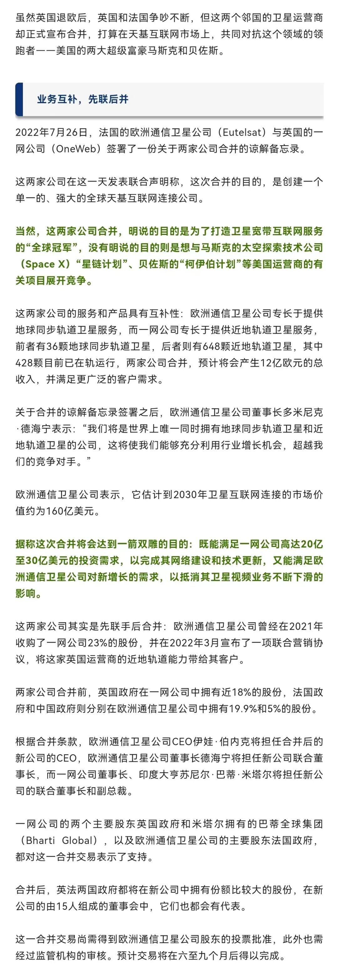 英法卫星公司合并,向马斯克和贝佐斯发起挑战