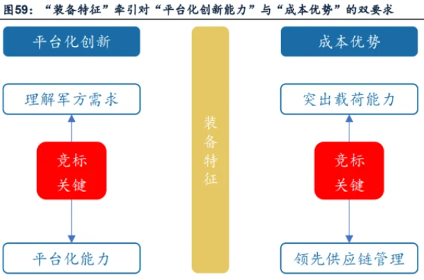 据上文,我们曾强调,对于军用无人机主机厂,无人机的消耗性带来相对有人机的规模化,叠加创新力量朝上游集中、经济力量朝下游集中,强调平台化的创新能力显得更为重要。 军用强调企业平台化创新能力,