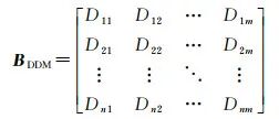 式中,i为面片Mi的序号(i=1, 2, …,m);j为水深采样点或待插点Pj的序号(j=1, 2, …,n)。连接规则ξ作为构成DDM的数据结构,可以是呈规则分布的格网或不规则分布的三角网。特别地,当ξ为正方形或矩形时,相应的DDM称为规则格网DDM(GRID_DDM)。由于正方形或矩形的规则性,格网点的平面位置(x, y)隐含在格网的行列号i、j中,此时的DDM就相当于一个n×m的水深矩阵,记为BDDM
