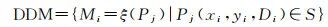 数学意义上的DDM是定义在二维空间上的一个连续函数D=f(x, y)。由于连续函数的无限性,DDM通常以有限的水深采样点按某种规则连接成的一系列空间小曲面片来逼近原始海底曲面,因此可给出以下DDM的数学定义:DDM是区域S的水深采样点或待插点Pj按规则ξ连接成的面片Mi的集合[1-2],即