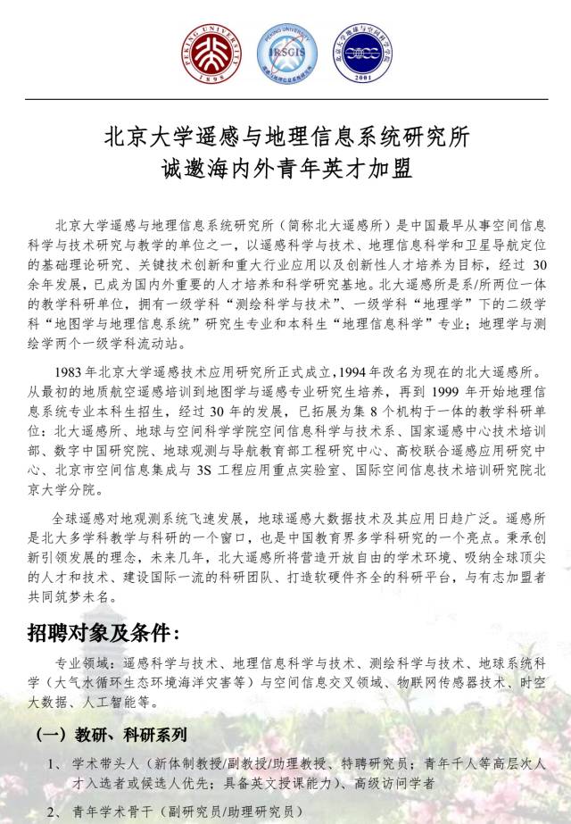 (1)博士生:应具备独立组织课题研究工作能力,具备良好的团队合作精神;